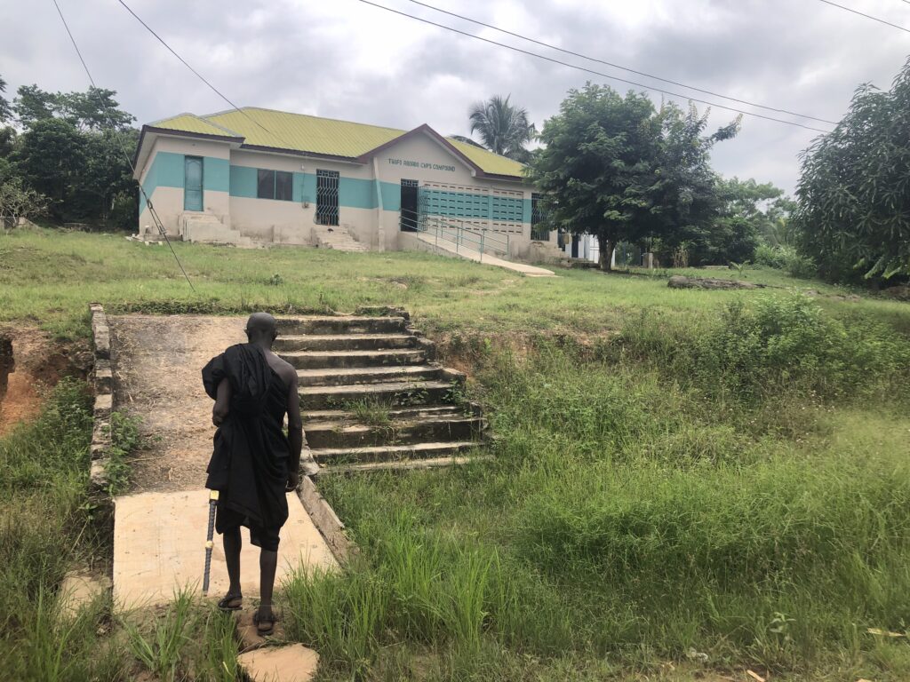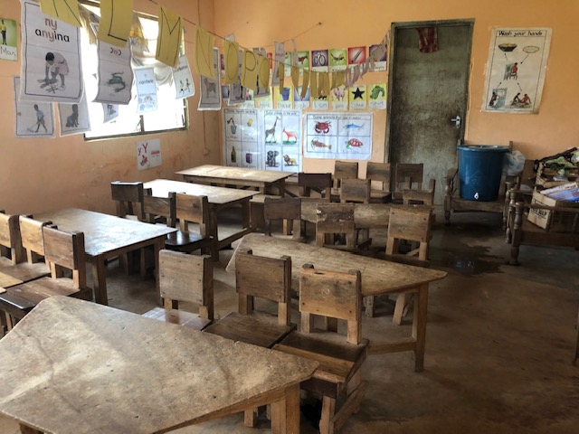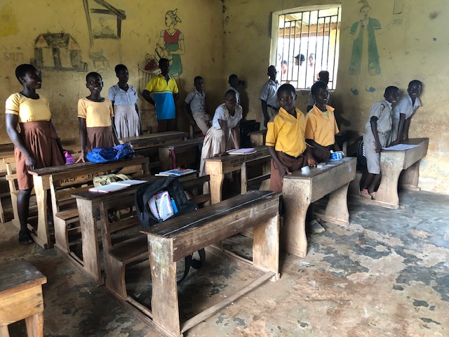 Although Ghanaians speak local dialects, such as Fante or Twi, English is the official language in Ghana and all classes are taught in English. Below are photos of typical schools seen in rural Ghana. Classrooms are sparsely furnished, there are no libraries, computers, or playground equipment. Most of the basic schools do not furnish any type of school meals. Students may be able to purchase food (e.g., plantain) from a canteen. If restroom facilities exist, they tend to be located in a separate building away from the school.